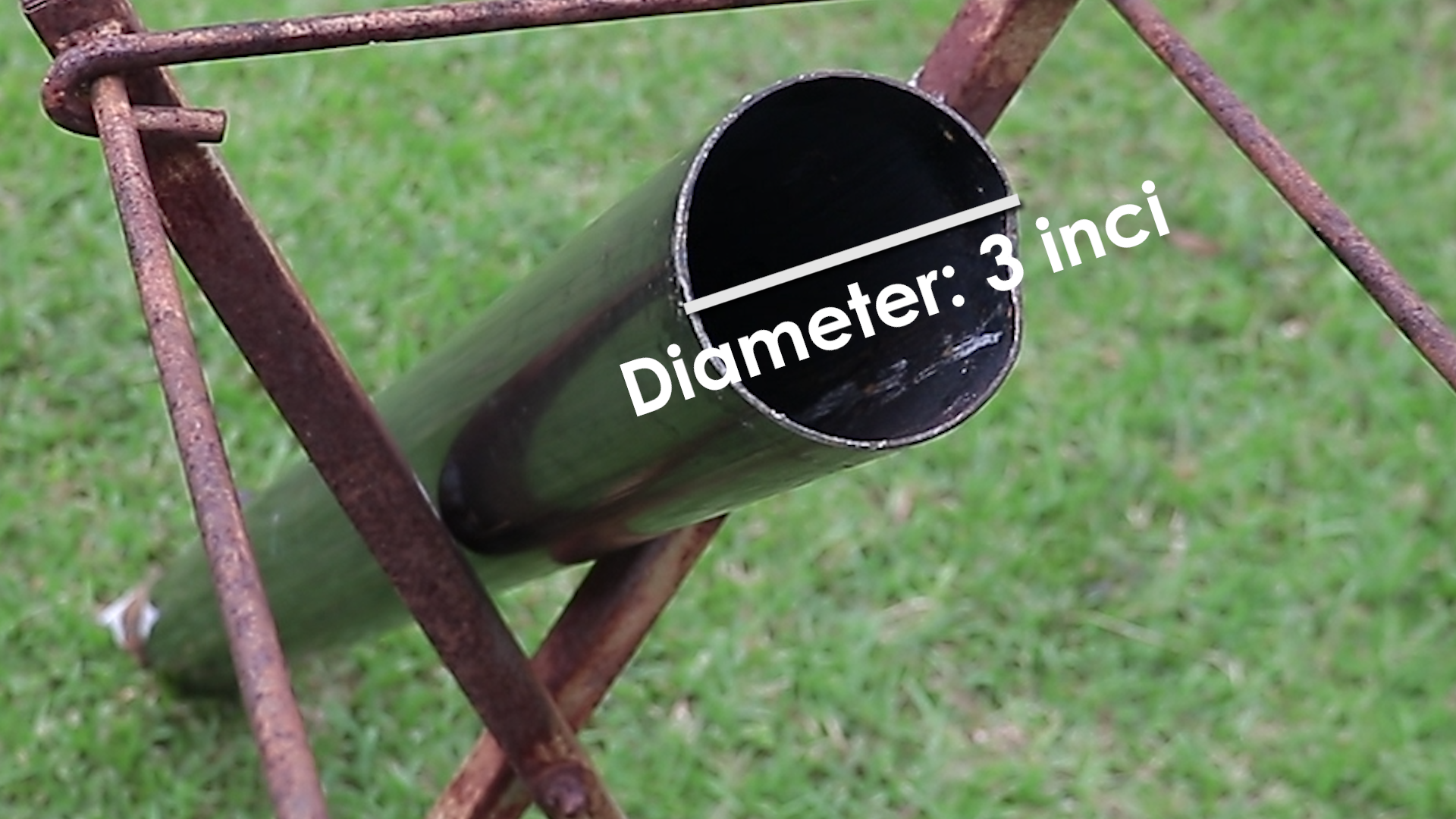 NOTA TAMBAHAN : Pastikan bahagian bawah Pipe di tutup dengan “Welding-Penuh” supaya tidak tercabut dan supaya “FORCE” letupan tidak menggerakkan meriam ke-depan.