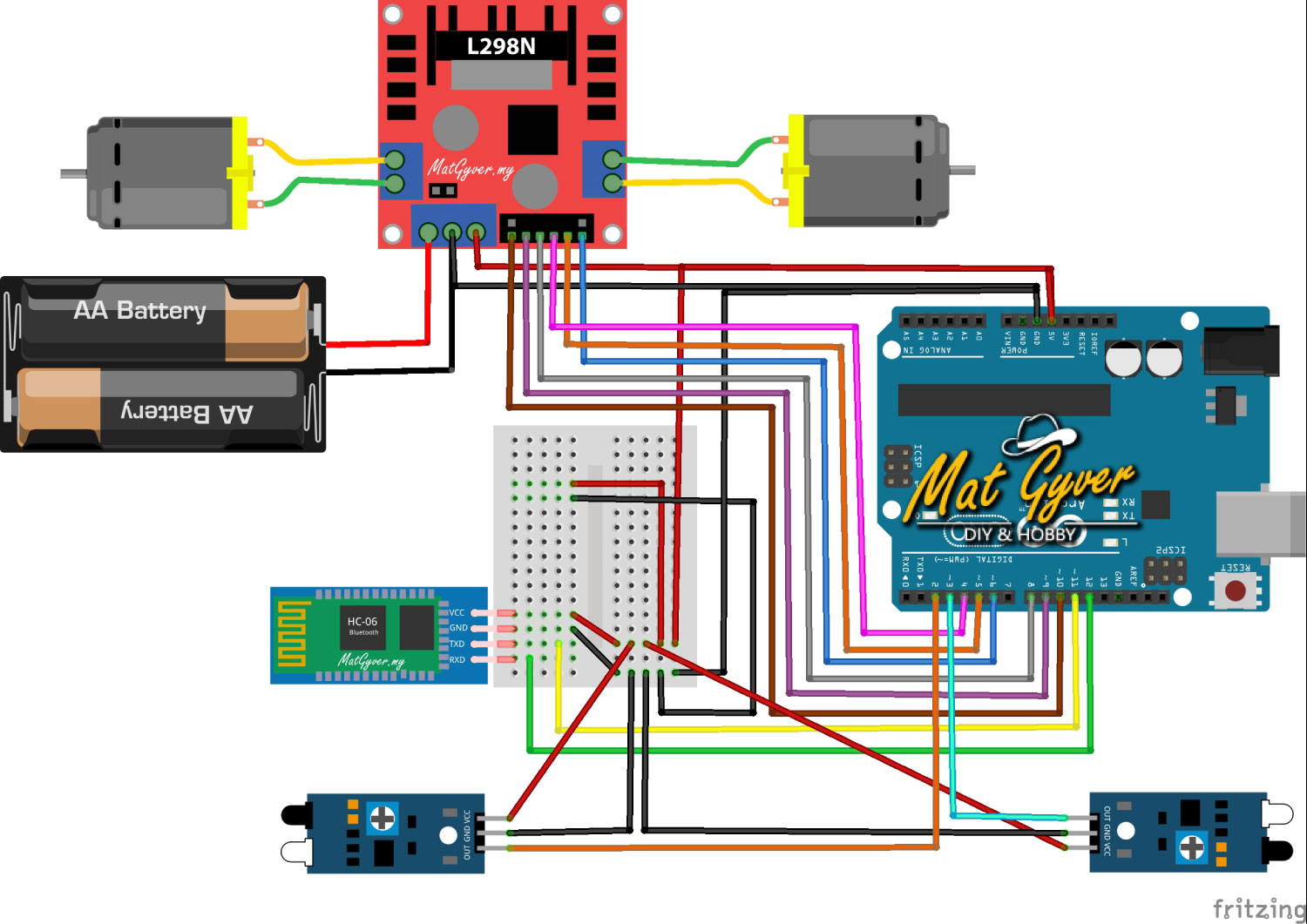 Di dalam post ini, kami akan menerangkan cara membina Line Following Robot dengan menggunakan Arduino, melalui MG Line Following Robot Kit MKII, MatGyver. Robot ini akan menggunakan dua (2) sensor InfraRed untuk mengesan Garisan-Hitam dan berdasarkan input yang diterima dari sensor, Arduino akan mengarahkan motor untuk bergerak.