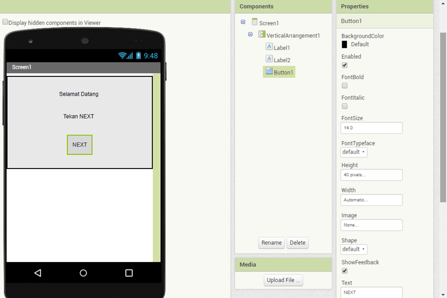 Setelah selesai menambah skrin, letakkan 1 butang pada skrin kedua