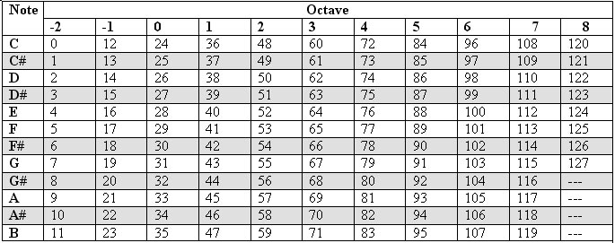 MIDI.sendNoteOn(43, 110, 1); //F#1