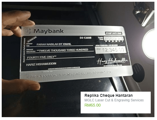 Hantaran Kahwin? “Mockup Cheque” boleh digunakan untuk dijadikan salah satu dulang hantaran untuk hari perkahwinan si mempelai.